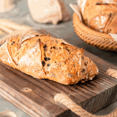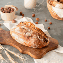 É uma receita saudável e com fermento natural au levain que leva 30 horas de fermentação. Pão extremamente saboroso, casca crocante, com miolo leve e úmido que combina com vários tipos de antepastos, conservas, patês, mousses e terrine.